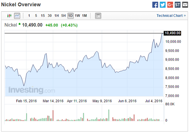 周二LME鎳價連續第三天上漲,漲幅達到4.4%,至10490美元/噸,創去年10月29日以來新高。7月1日,菲律賓宣布啟動環保整頓,對礦業進行審查,隨后兩家鎳礦因為違反環保規定被叫停。
