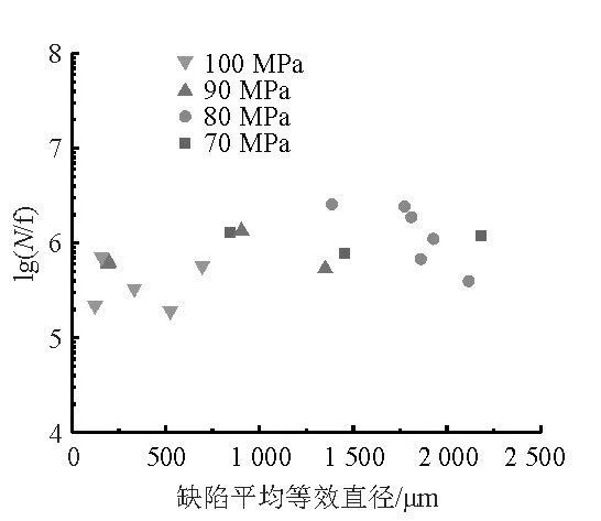 液態壓鑄試樣裂紋源缺陷平均等效直徑和疲勞壽命
