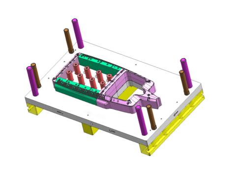 2. 定位塊和沖刀都分別為一整體件,降低加工過程中的換料和重復(fù)校刀的時間,提高加工進度,同時也保證了工件尺寸穩(wěn)定性。